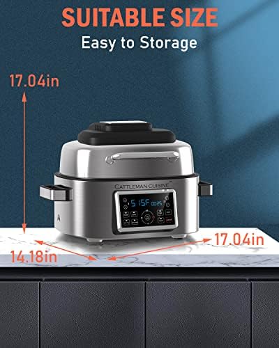 Avis sur CATTLEMAN CUISINE Grill électrique d’intérieur 10 en 1 avec grille à air, friteuse à air, rôtissage, cuisson, déshydratation, bœuf et frites, 6,5 QT, argent