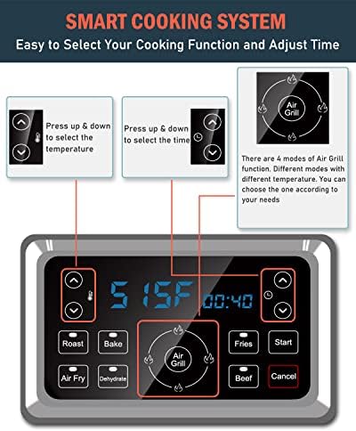 Grill au charbon à haute température de 515 F : notre gril de friteuse à air avec la température la plus élevée de 515 F, qui est plus proche du grill au charbon, l’effet du grill est meilleur grâce à la technologie de grillage cyclonique. Une grille de gril haute densité donne aux aliments des marques grillées, leur donnant un aspect plus délicat.