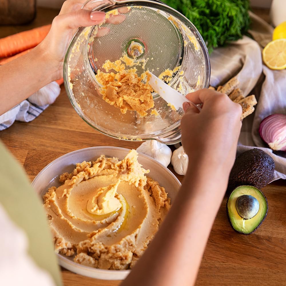 Réglez la vitesse avec 2 vitesses. Bol en verre de haute qualité, robuste et résistant aux rayures, d’une capacité de 500 g.