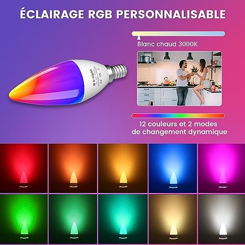 Voici le prix pour acheter DoRight 3W E14 Ampoule bougie, C35 LED à changement de couleur avec télécommande, fonction mémoire, équivalent 40W, RVB + blanc chaud 3000K à intensité variable (2 pièces) au Maroc