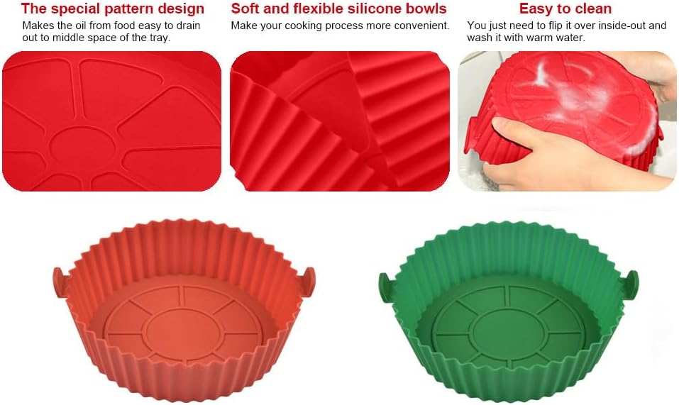 Les acheteurs qui ont testé Doublures en silicone pour friteuse à air Doublures de friteuse à air en silicone Résistant à la chaleur Accessoires de friteuse à air réutilisables Doublure de panier de friteuse à air Bol en silicone pour friteuse à air 8 EN VERT ET ROUGE 2 pièces de 8 pouces