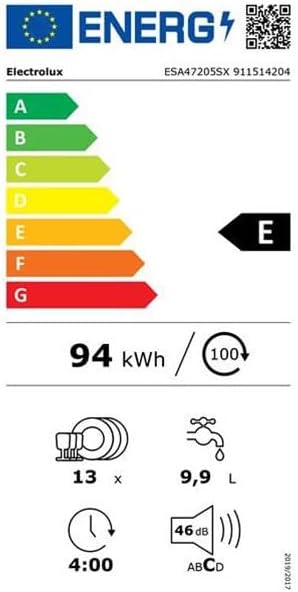 Fiche Technique ELECTROLUX LV freestanding silver ESA47205SX au Maroc