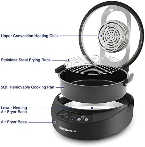 Avis sur Elite Gourmet EAF4700 Friteuse à air numérique 5 Qt, saisies, cuissons, rôtis, cuisinière saine sans huile à chauffage supérieur et inférieur, réglages de température/minuterie, recettes incluses