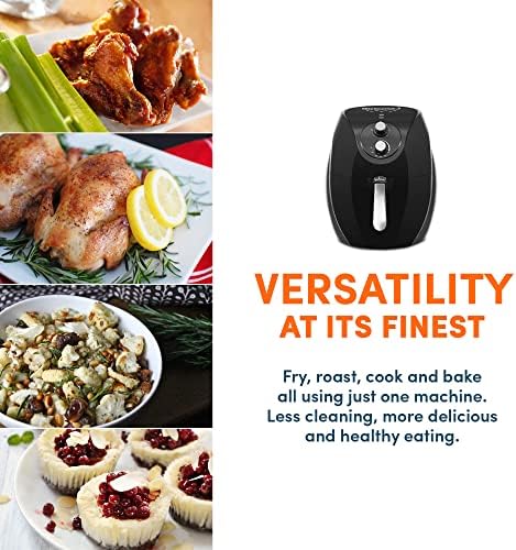 ALIMENTATION SAINE en cuisinant avec 85 % d’huile en moins pour de délicieux repas sans gras. Même saveur et finition croustillante sans les calories ajoutées ! Ajoutez simplement les aliments dans le panier, ajoutez une cuillère à soupe d’huile si vous le souhaitez, réglez la température/l’heure et commencez la cuisson !