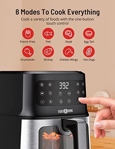 Le Prix Friteuse à air, PARIS RHÔNE 5,3 QT avec fenêtre de visualisation et panier antiadhésif recouvert de céramique, grand four à friteuse à air avec fonctions 8 en 1, commande à une touche, PAS de préchauffage, avec plateau amovible, facile à nettoyer
