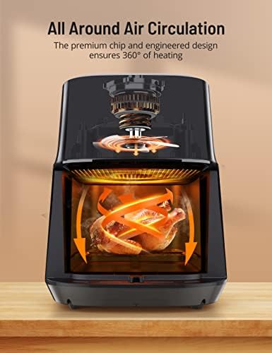🥪[NO PRE-HEATING & OILLESS]: Tube à ondes lumineuses avancé intégré au lieu du tube de chauffage électrique ordinaire en acier inoxydable, chauffage rapide tout en réduisant la puissance à 1 200 W, économisant 25 % d’électricité par rapport aux autres airfryers. Circulation d’air chaud à 360°, l’airfryer rend les aliments croustillants et juteux, réduisant l’huile de 85 %.