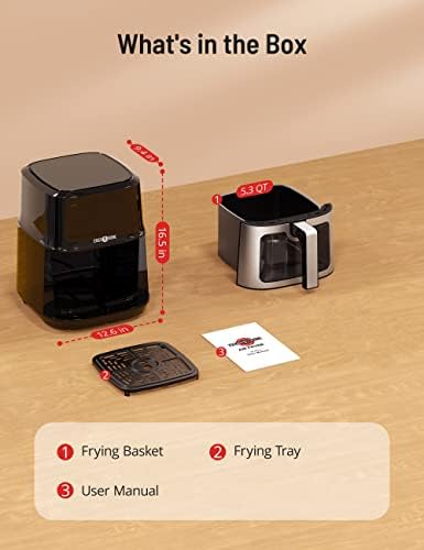 Fiche Technique Friteuse à air, PARIS RHÔNE 5,3 QT avec fenêtre de visualisation et panier antiadhésif recouvert de céramique, grand four à friteuse à air avec fonctions 8 en 1, commande à une touche, PAS de préchauffage, avec plateau amovible, facile à nettoyer