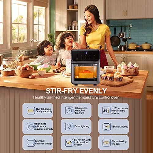 Voici le prix pour acheter Friteuse à air TXQULA Four grille-pain 10 litres 7 en 1, four à convection, rôtisserie, rôtisserie, cuisson, déshydratation, 12 préréglages de cuisson, grande fenêtre facile à voir, avec accessoires et recettes, noir