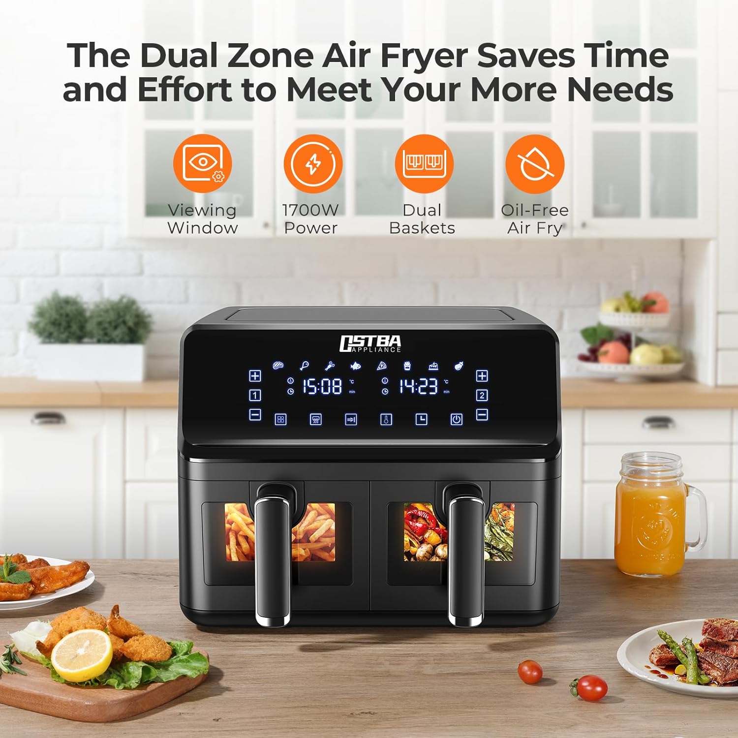 Conception de Fenêtre de Visualisation: Cette friteuse sans huile dual zone dispose de fenêtres de visualisation claires. Vous pouvez ainsi savoir exactement où en est votre nourriture en termes de maturité pendant la cuisson, vous pouvez vérifier l’avancement de votre cuisson sans ouvrir le panier, garantissant des repas parfaitement préparés à chaque fois.