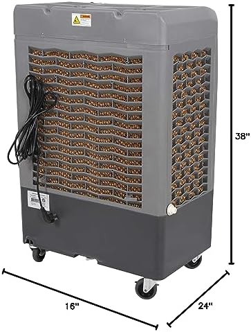 Voici le prix pour acheter Hessaire MC37M Ventilateur de refroidissement par évaporation portable, environnements intérieurs/extérieurs à haute température, 3100 CFM, 950 pieds carrés, ventilateur à 3 vitesses, 59 dB, gris