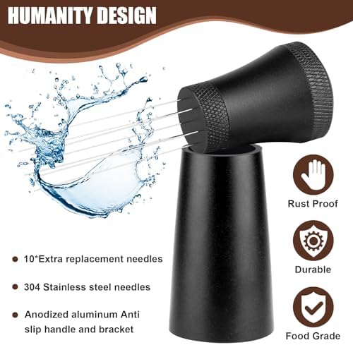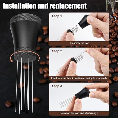 Le Prix HURRICANEMANSPT Outil de distribution d’espresso Accessoires pour agitateur à café avec 0,35 mm en acier inoxydable 304 7 aiguilles et 10 aiguilles supplémentaires de remplacement et support de poignée en alliage d’aluminium antidérapant