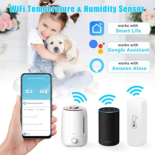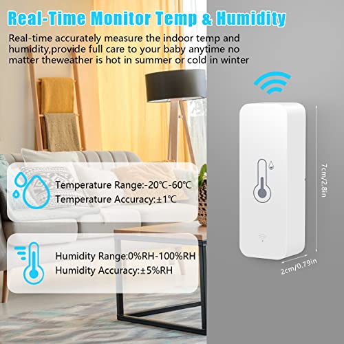 【Plus précis et plus rapide】 : les capteurs d’humidificateur sont fabriqués par les principaux fabricants de l’industrie pour fournir une large gamme de détection d’humidité et de température. La plage de température peut être surveillée de -20°C à 60°C et la plage de mesure de l’humidité de 0% à 100% HR. La précision de la température de ± 1 ° C et l’humidité de ± 5% HR sont actualisées toutes les 5 minutes pour des mesures plus précises. (WiFi 2,4 GHz uniquement, Wi-Fi 5G non pris en charge !)