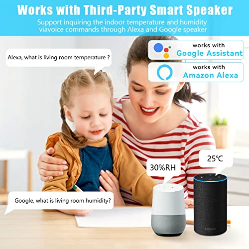 【Surveillance à distance et Smart Link】: En tant que source de données de comptage de température et d’humidité wifi, le capteur d’humidité du thermomètre wifi prend en charge Alexa, Google Assistant, SmartHome, Smart Life et d’autres appareils intelligents. Avec de simples commandes vocales, vous pouvez connaître la température/l’humidité. Vous pouvez également définir une variété de scènes intelligentes pour allumer automatiquement le climatiseur et le déshumidificateur dans la pièce.