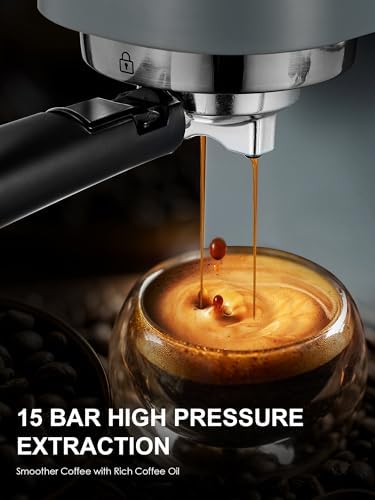Voici le prix pour acheter Ihomekee Machine à expresso Cafetières 15 bars Machines à cappuccino avec mousseur à lait pour expresso/cappuccino/latte/moka pour brassage maison 1350 W – CM6927