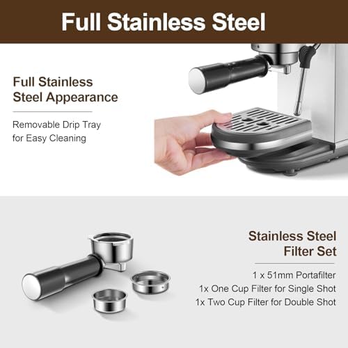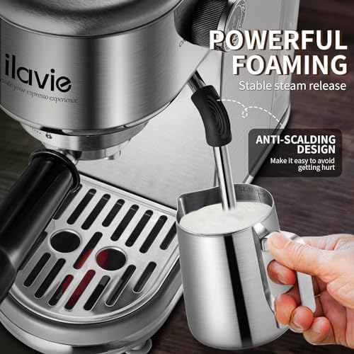 Le Prix ILAVIE Machines à Expresso 20 Bar, Machine à Expresso pour la Maison avec Mousseur à Lait, Machine à Café Compacte pour Latte, Macchiato, Cappuccino