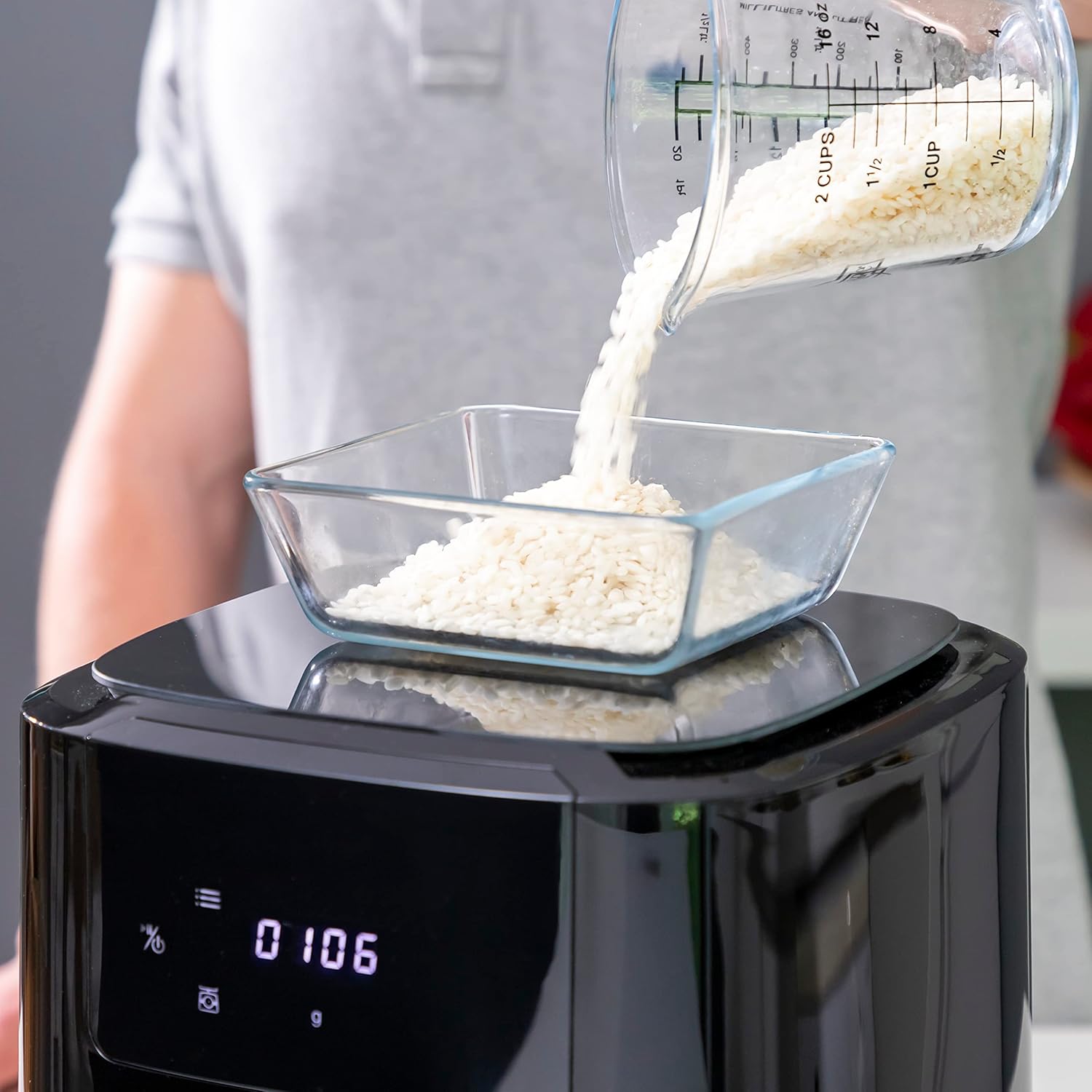 Avis sur InnovaGoods® Air fryer 5L, oil-free 1500W fryer with +100 recipes in FR, electric fryer with integrated scale, 8 programs, touch screen, window, timer and 360° airflow.