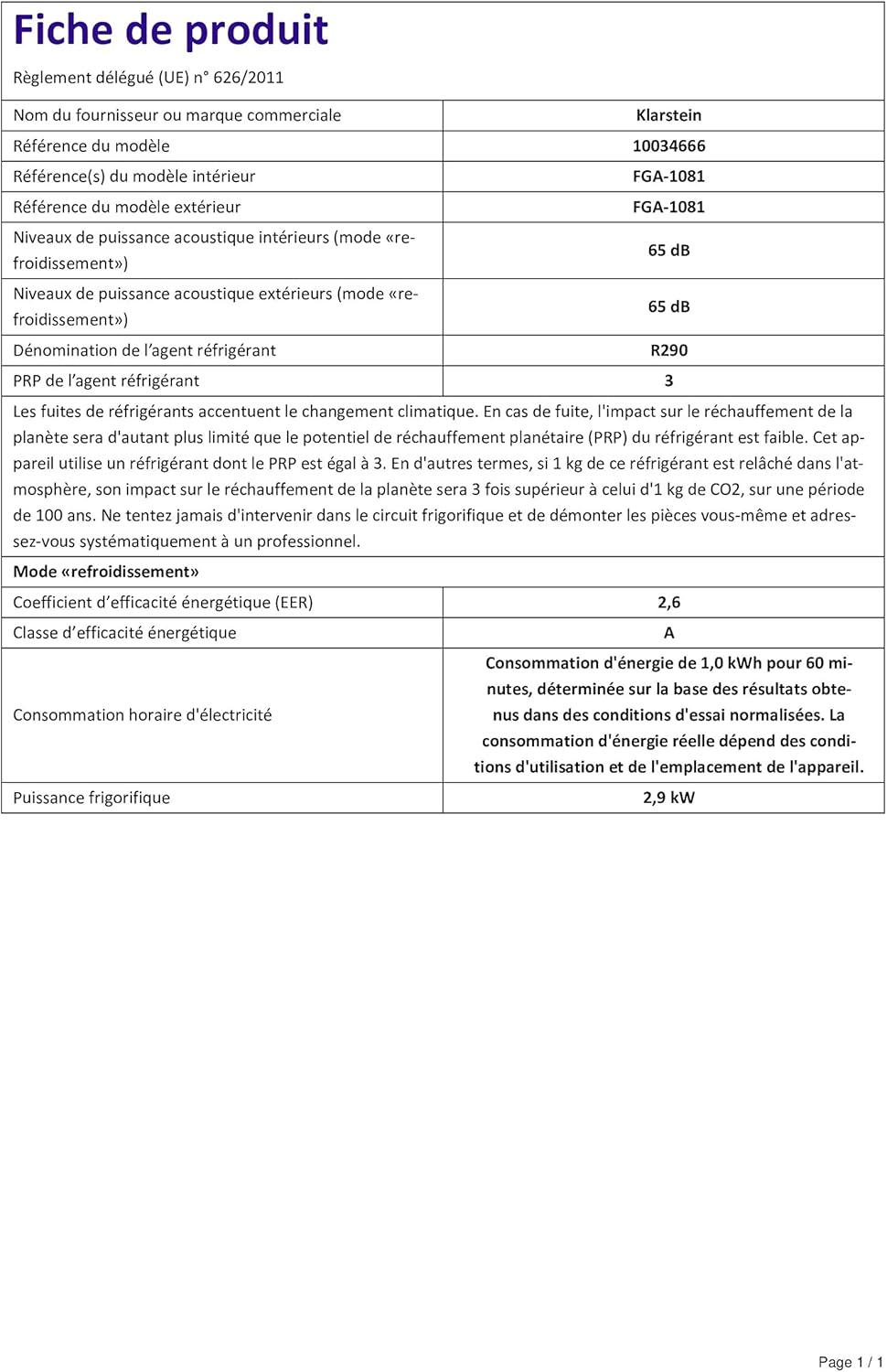 Fiche Technique Klarstein Silent Mobile Air Conditioner, 5 in 1 Portable Air Conditioner, Mini Air Conditioner, Purifier and Odour Elimination, Night Mode, Air Dehumidifier, Low Consumption, 10K BTU, Air Conditioners au Maroc