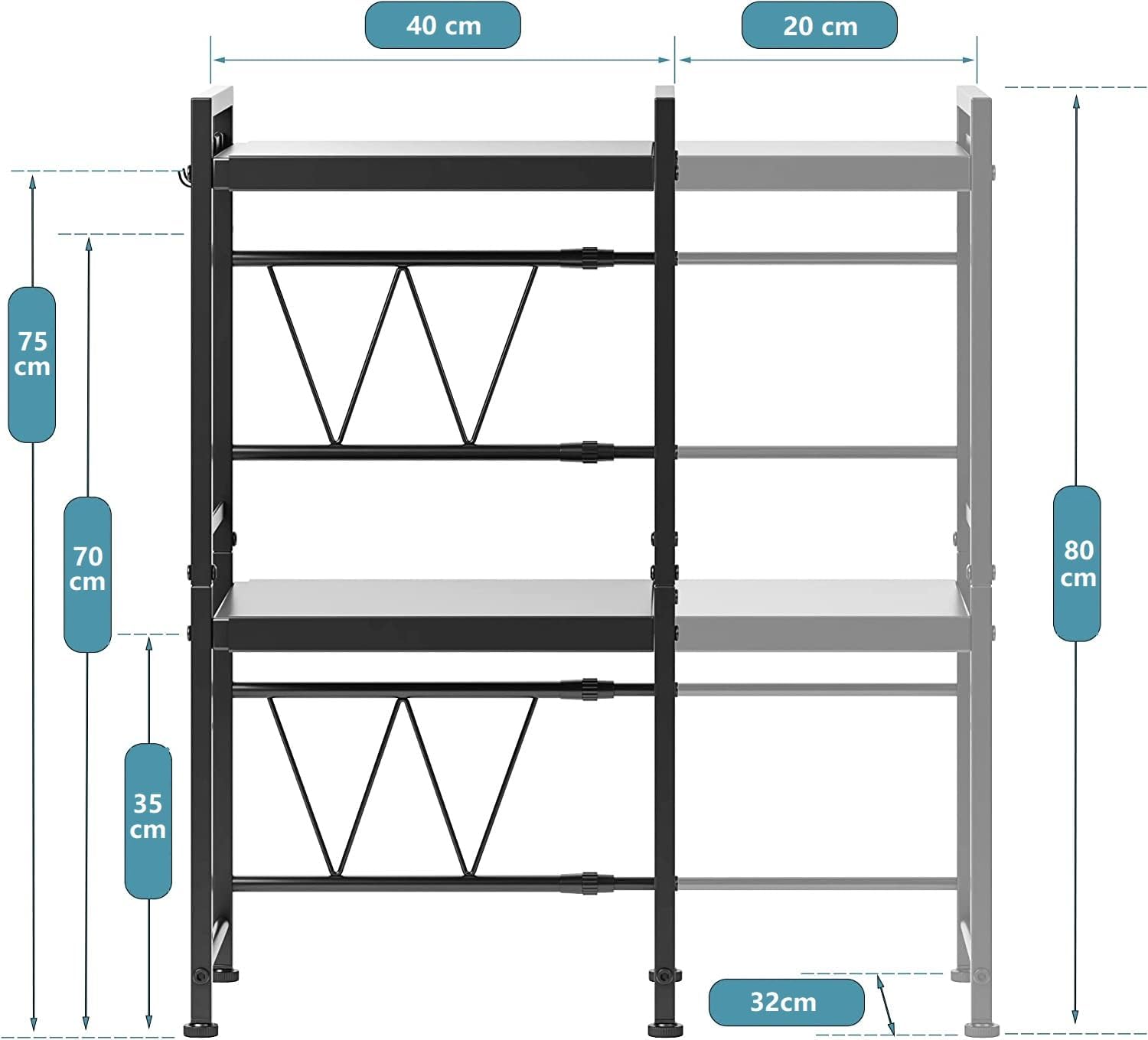 [Extensible]: La longueur de l’étagère à micro-ondes est réglable de (44 cm – 60 cm). La hauteur de la couche inférieure peut être réglée 5 cm. Avec l’étagère, vous pouvez facilement économiser un micro-ondes ou d’autres appareils de cuisine, ce qui rend votre cuisine propre et plus soignée.