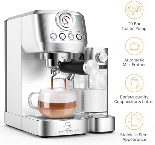 Voici le prix pour acheter MAttinata Machine à cappuccino et machine à expresso, machine à latte avec système automatique de mousse de lait, cadeaux de Saint-Valentin pour lui/elle