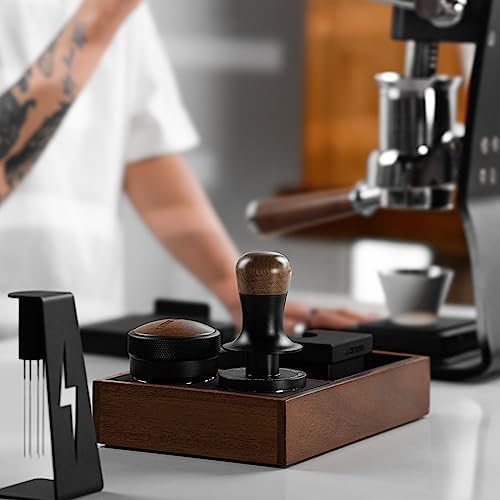 Voici le prix pour acheter MHW-3BOMBER Tamper à café expresso de 58 mm avec tampon calibré à trois ressorts Tamper à main expresso de 30 lb avec retour sonore revêtement en titane noir T6076T
