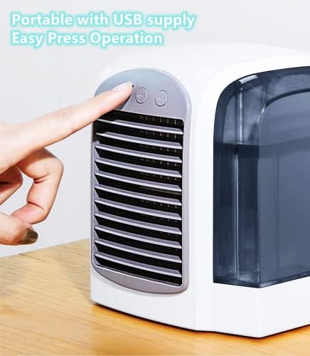Avis sur Mini Personal Air Cooler, USB Compact Coolers, Portable Fan Cooler with water tank, for Home Office Bedroom Garden Outdoors, Eco Friendly (blue)