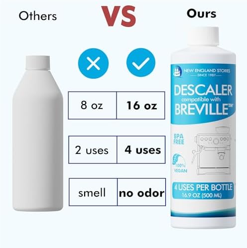 Avis sur New England Stories Solution de détartrage compatible Breville (8 utilisations au total), kit de détartrage précieux de 2 ans avec 8 tablettes de nettoyage, spécialement conçu pour nettoyer les machines Breville