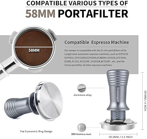 Avis sur Pilon à expresso de 58 mm, pilon à café Barista de qualité supérieure avec ressort calibré constant de 30 lb, base 100 % en acier inoxydable, pilon adapté à tous les porte-filtres de 58 mm, accessoires pour expresso