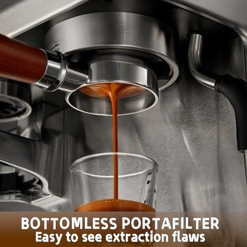 Porte-filtre à expresso sans fond – Le porte-filtre sans fond compatible avec Breville permet une vue claire et dégagée du processus d’extraction, vous pourrez voir l’extraction en temps réel pour comprendre si vous broyez et tassez correctement.