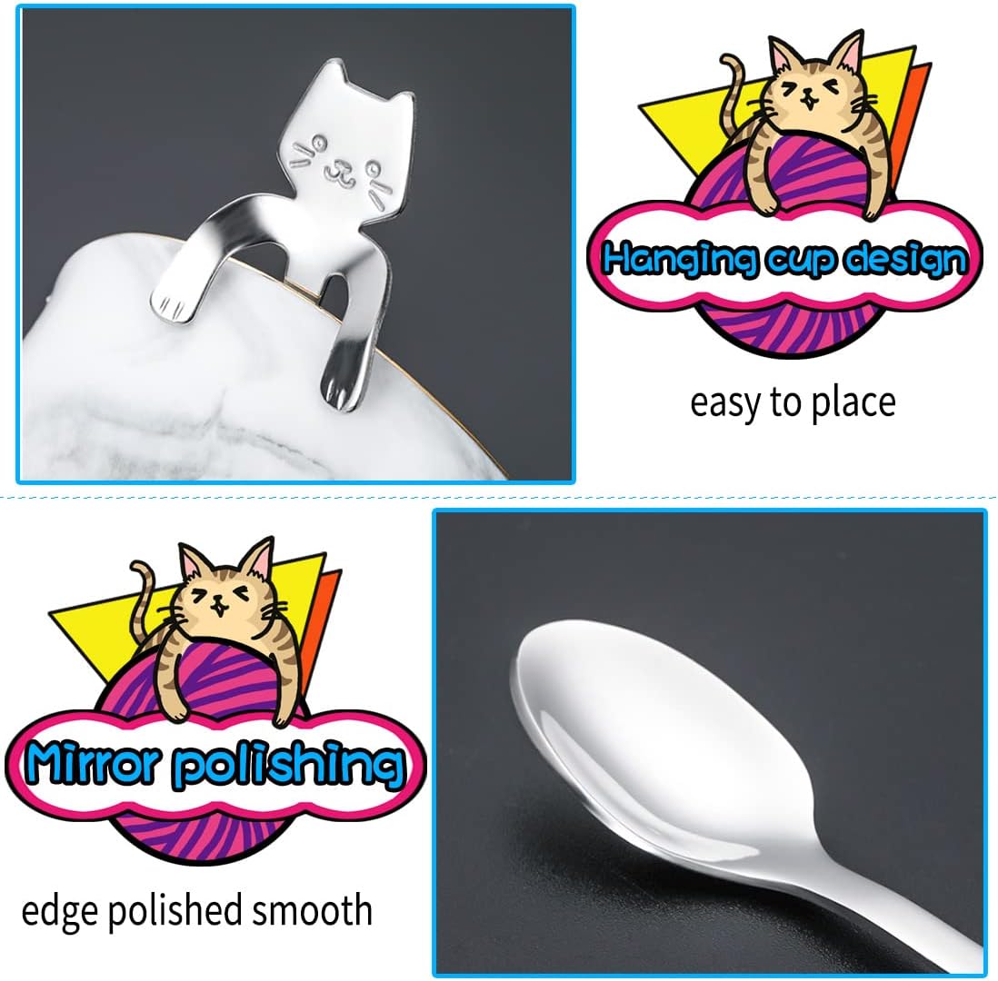 Cat spoon – Cute cat handle design, the cat paws can be hung on the edge of the cup.