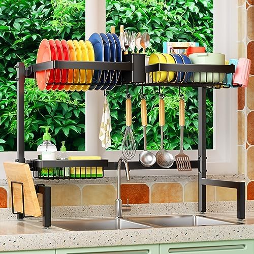 Avis sur SNSLXH 2-Tier Over The Sink Dish Drying Rack, Kitchen Large Sink Rack, Suitable for Most Sinks, Effective Drainage Drying, Kitchen Drying Rack, 24.8″-35.4″