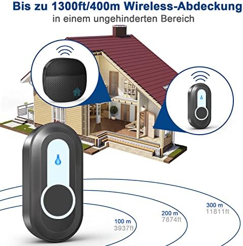 Le Prix Sonnette sans Fil 400 Mètre Sonnette de Porte IP55 Étanche Carillon Electronique, Kit de Carillon avec Récepteurs Enfichables pour la Maison, 55 Mélodies au 5 Niveaux Volumes, Noir au Maroc