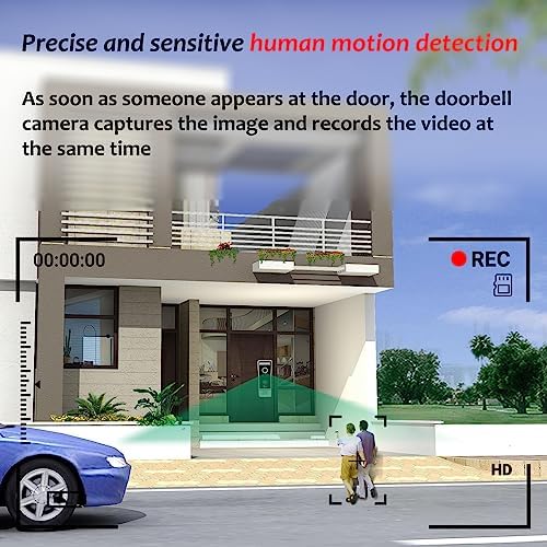 Enregistrement et prise de vue automatique : lorsque le visiteur appuie sur la sonnette vidéo ou que quelqu’un a déclenché la détection de mouvement, la caméra extérieure enregistre et prend des photos automatiquement. Les photos et les vidéos peuvent également être stockées dans une carte micro SD supplémentaire. Ce lot comprend une carte TF de 32 Go.