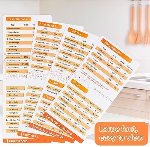 Les acheteurs qui ont testé Tableau des temps de cuisson de la friteuse à air en gros caractères, aide-mémoire facile à lire et à trouver pour la friteuse à air.