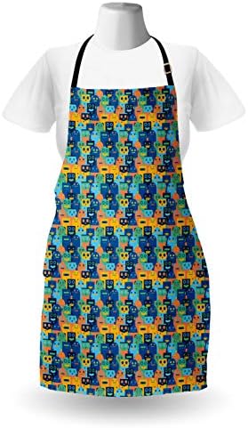 Voici le prix pour acheter Tablier de dessin animé Ambesonne, robots vintage Space Fiction Comic Cyborg Future Repetition Design Art, bavoir de cuisine unisexe avec col réglable pour la cuisine et le jardinage, taille adulte, multicolore