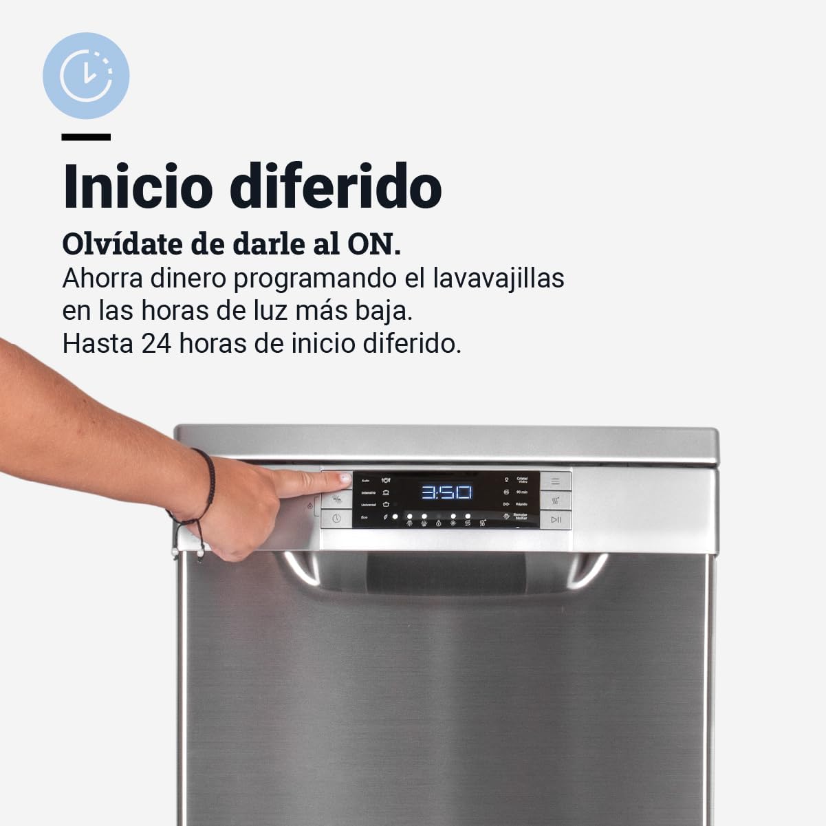 [8 programmes] Offers 8 different washing programs, including a specially designed ECO program to save energy and water. This dishwasher easily adapts to various washing needs, from delicate to very dirty, and allows delayed programming for convenience