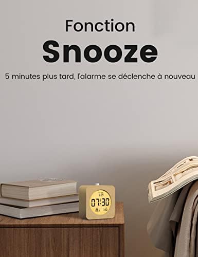 Fiche Technique aboveClock Réveil Numérique en Bois, Réveil Matin LCD Horloge Numérique avec Affichage Date, Température, Fonction Snooze, Rétro-éclairé, Alimenté par Pile, Bois Clair