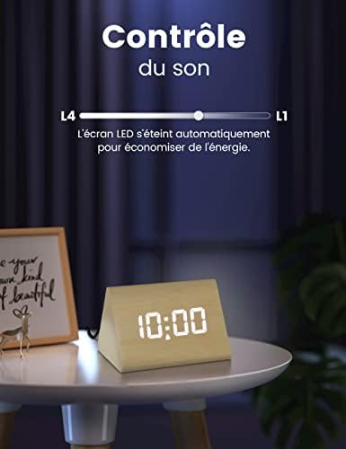 Fiche Technique aboveClock Réveil Numérique, Réveil Matin LED Horloge Digitale avec 3 Alarmes, 4 Niveaux de Luminosité, Horloge Numérique Alimenté par Batterie ou USB【Bois Clair】