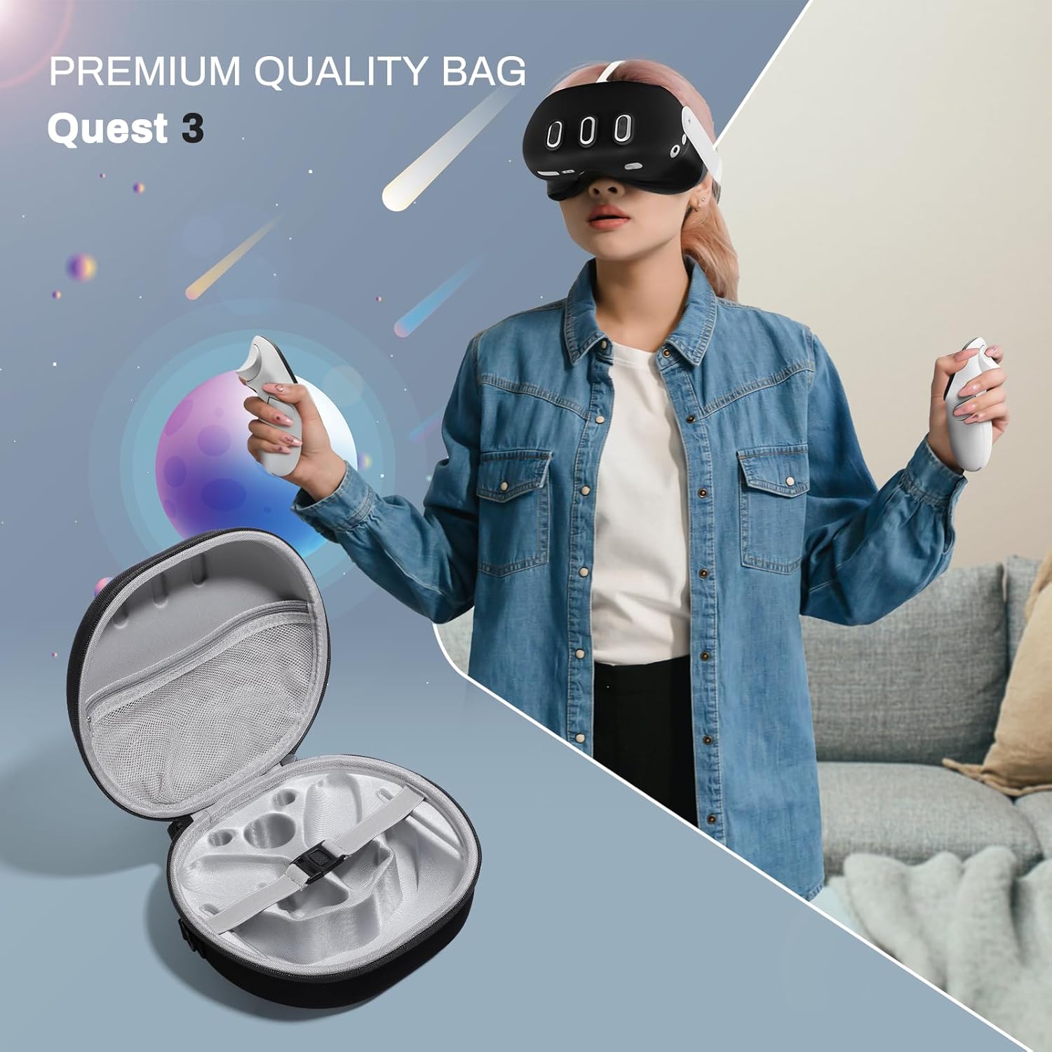 【Conception professionnelle】Cet étui rigide de voyage VR est spécialement conçu pour le casque Quest 3 et les contrôleurs. L’intérieur est fait d’un matériau super polaire doux, qui peut mieux protéger votre VR et d’autres accessoires des rayures, des collisions et des dommages.