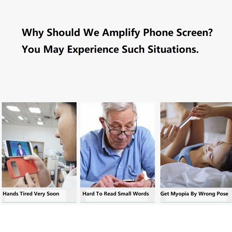 C’est un support de téléphone portable oeil-protégé qui peut agrandir l’écran des téléphones. Applicable à tous les modèles de téléphones mobiles sur le marché. Il peut agrandir l’écran du téléphone par 3 t 4 fois. Pratique pour les utilisateurs de regarder des vidéos sur le téléphone à une plus longue distance et réduire les radiations, protégeant les yeux.