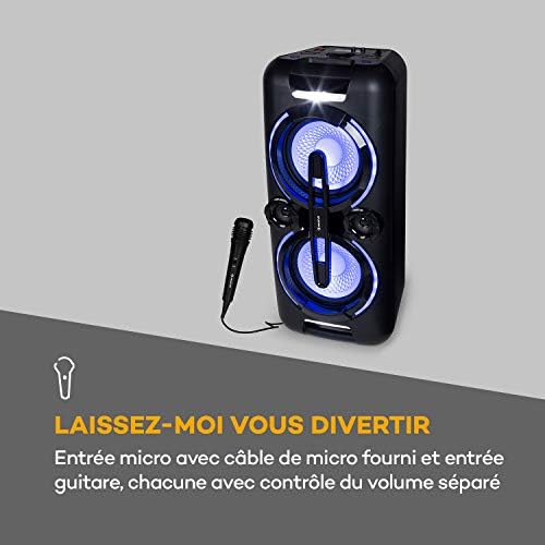 Multicolore : effets d’éclairage LED sensibles à la musique pour éclairer la membrane de l’enceinte | Let me entertain you : deux entrées de micro et un câble de micro fournis avec réglage séparé du volume
