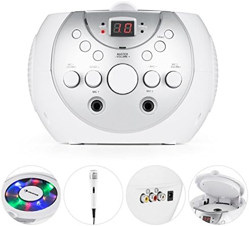 Le Prix auna SingSing – Chaîne karaoké, Lecteur CD, Effet de lumière LED stylisé, Section Micro avec 2 entrées Jack, Sortie vidéo, Deux Haut-parleurs stéréo, Écran LCD, Blanc