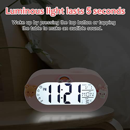 🎀【Fonction Veilleuse Activée Par Le Son】💖 : Appuyez sur le bouton supérieur pour éclairer l’écran. Les enfants peuvent ainsi facilement lire l’heure la nuit ou se réveiller en tapant doucement sur la table pour produire un son. Réveil enfants est un super cadeau pour les enfants et un excellent outil d’apprentissage pour les étudiants.
