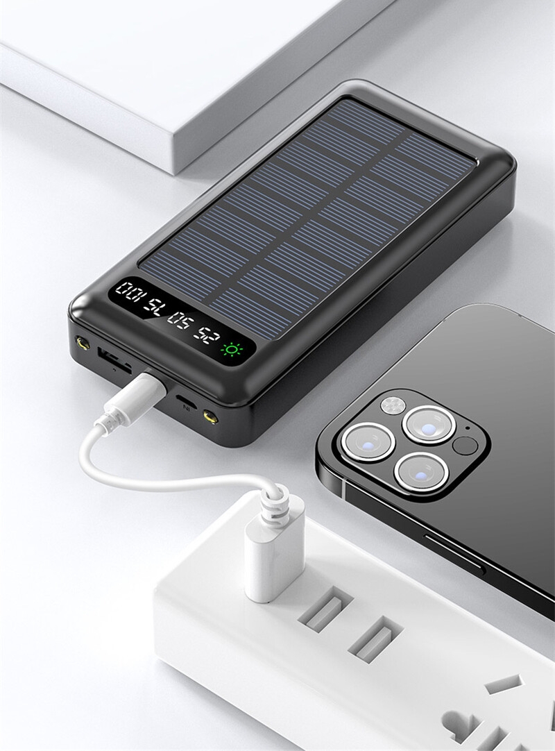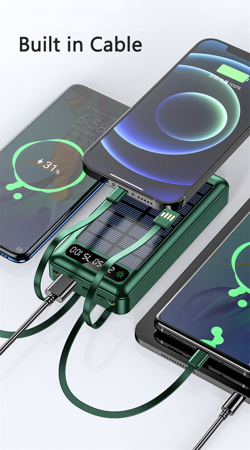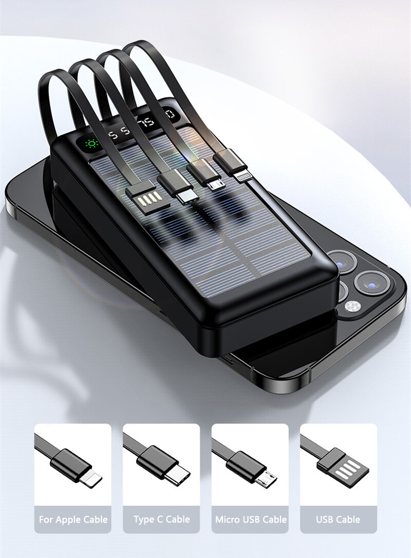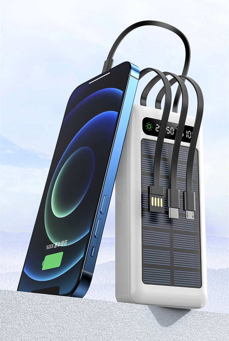 0000/20000/10000 mAh Batterie externe solaire à câble intégrée avec lampe de poche LED pour iPhone 12 XiaomiP externeBatterie de banque d’ower