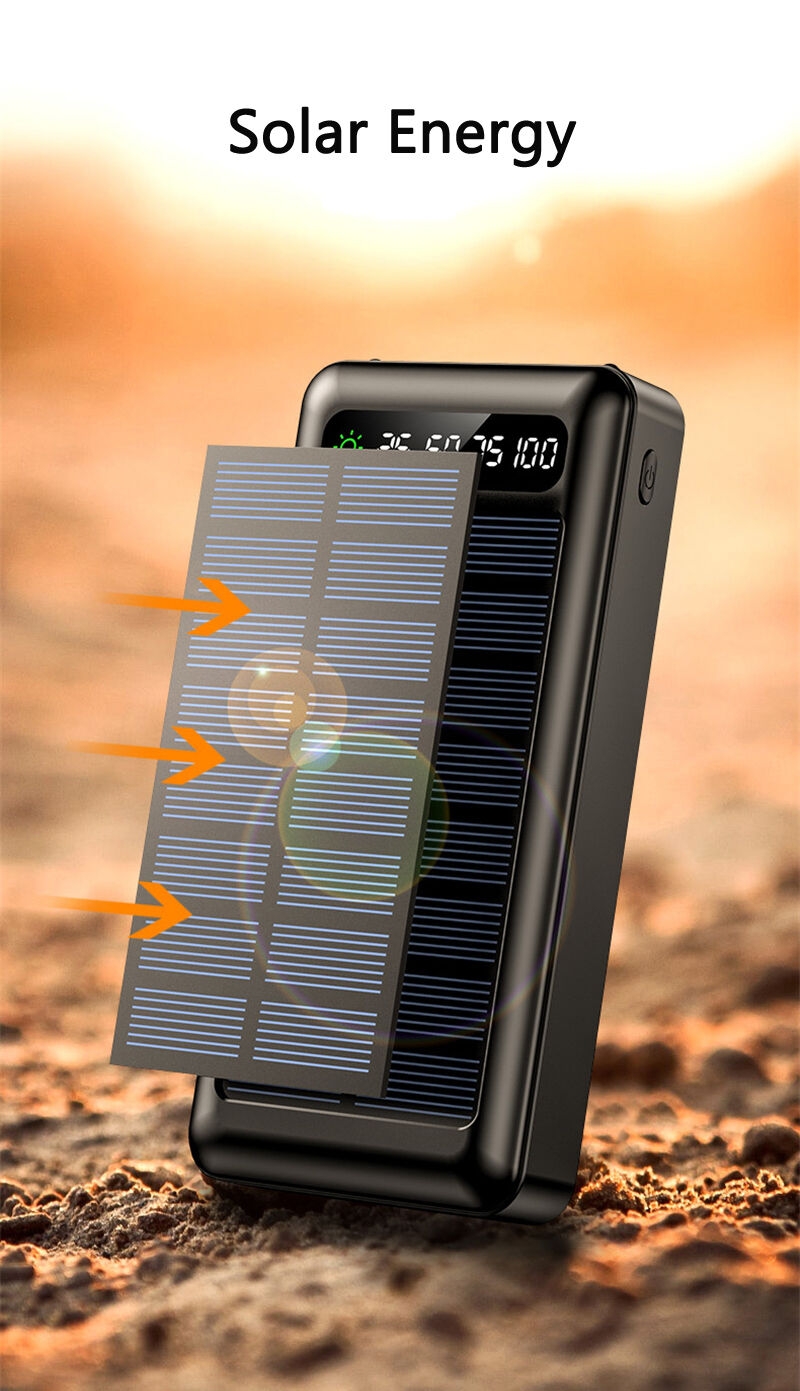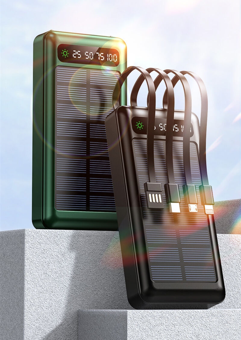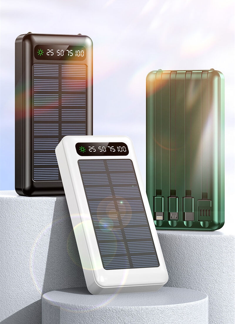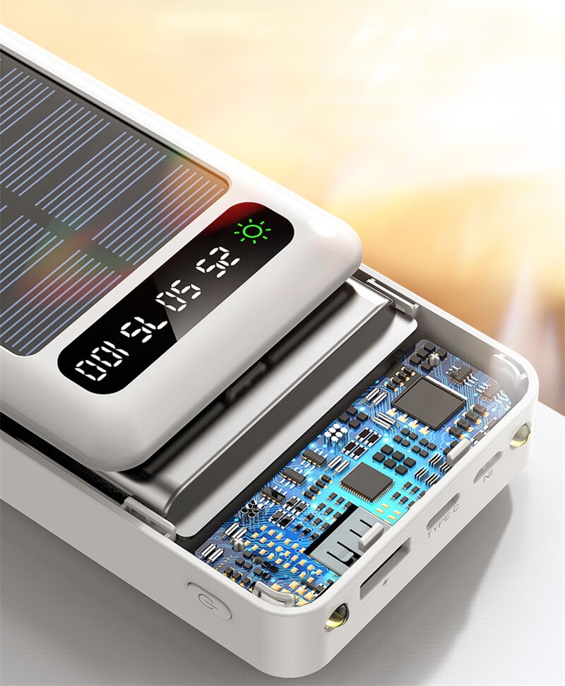 0000/20000/10000 mAh Batterie externe solaire à câble intégrée avec lampe de poche LED pour iPhone 12 XiaomiP externeBatterie de banque d’ower