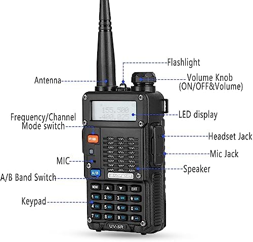 Lampe de poche intégrée : l’écran LCD rétroéclairé fournit des informations claires sur le canal et la batterie à l’écran, la lampe de poche intégrée peut être utilisée pour éclairer l’obscurité lorsque vous sortez la nuit.