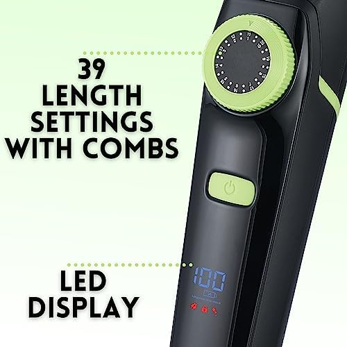 Le Prix BarberBoss Tondeuse à barbe pour hommes, tondeuse pour oreilles et poils de nez, cadran de précision, lame en céramique, 4 peignes, étanche, affichage LED et verrou de voyage, QR-6085