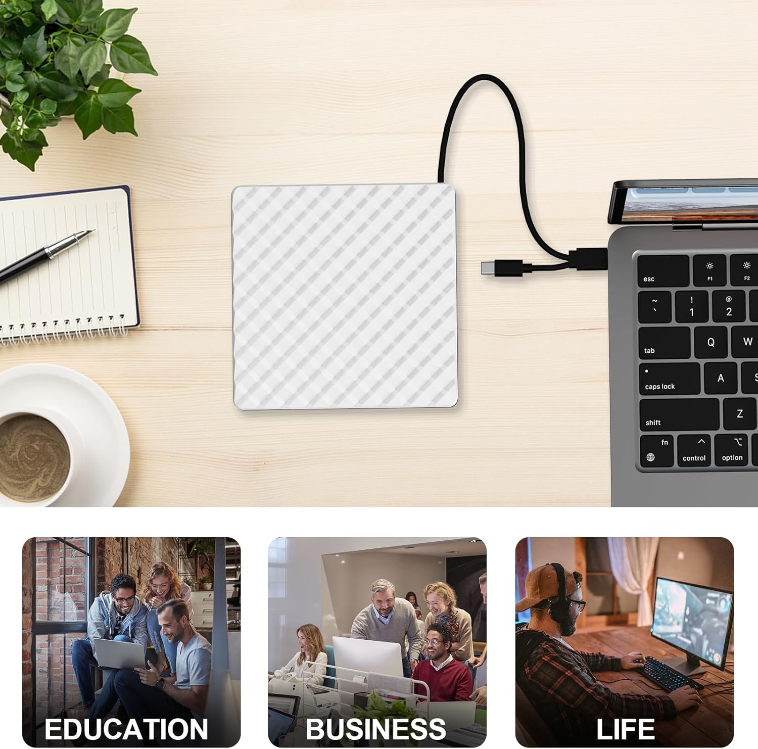 【Fashion and Portable Design】The external optical drives and writers have a sleek, lightweight and shock-resistant design. The data cable is hidden on the back of the CD / DVD player, which prevents the cable from getting lost at any time and anywhere. You can easily store it in your bag and take it anywhere.