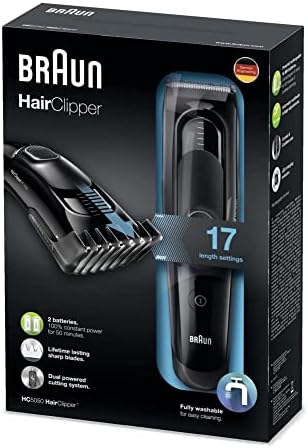 Le Prix Braun HairClipper Tondeuse Électrique Homme Cheveux Et Barbe, Lames Affûtées Et Inusables Noir, Conçues Pour Durer 2 Fois Plus Longtemps, 17 Réglages De Longueur, HC5050