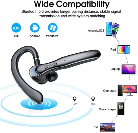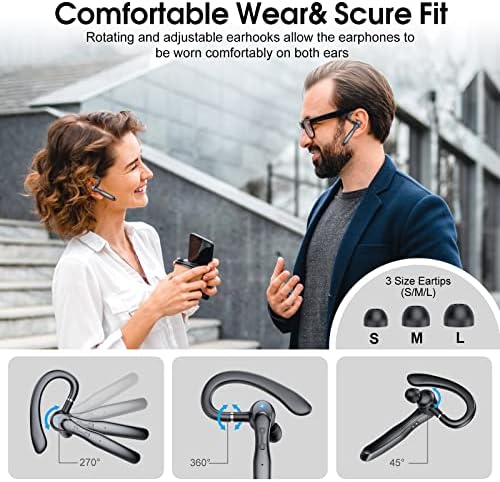 Fiche Technique Csasan Oreillette Bluetooth, Main Libre Casque Bluetooth 5.3 sans Fil 100H avec Double Mic Réduction du Bruit, Stéréo Écouteurs sans Fil Commutation de Deux Appareils pour Bureau, Conduite