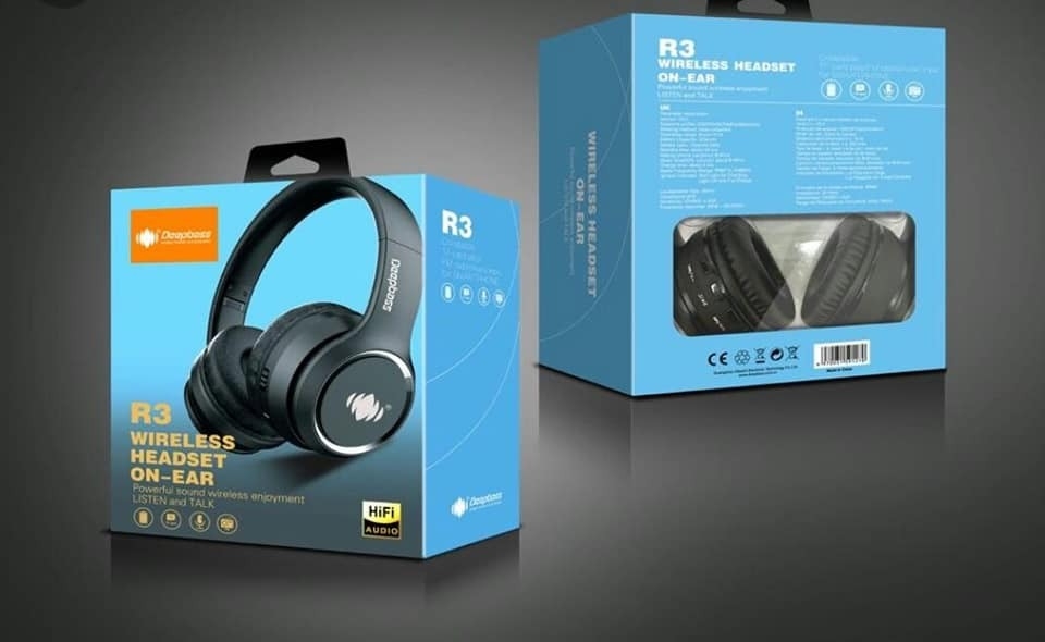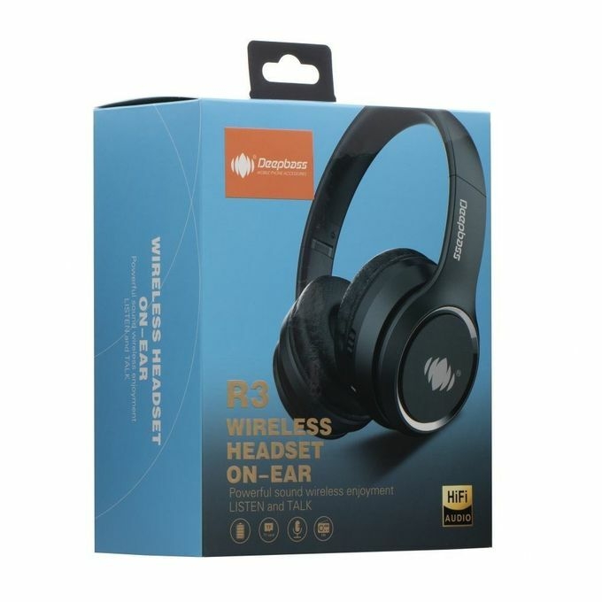 Casque stéréo Bluetooth DeepBass R3 – démontrez un son stéréo puissant et offrez à son propriétaire une expérience d’écoute inoubliable sur votre musique préférée. Modèle d’accessoire avec microphone et boutons permettant de répondre à un appel et d’ajuster l’écoute de la musique.